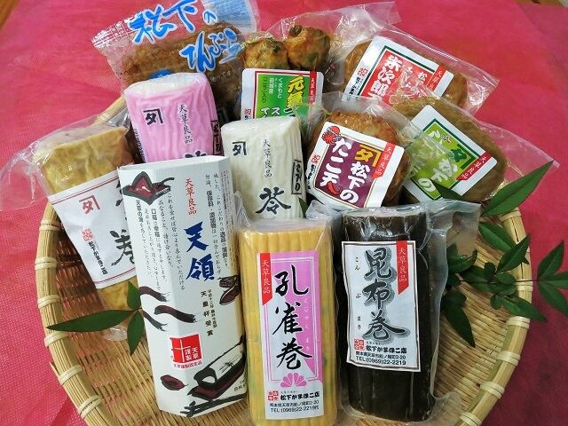 天草の海の恵をふんだんに用いて、松下の職人が丁寧に作った蒲鉾がたっぷり入った特別セット♪旬の地魚を用いているから、素材の美味しさが違います!安心でヘルシーな蒲鉾の数々を、どうぞお楽しみください(^_-)-☆